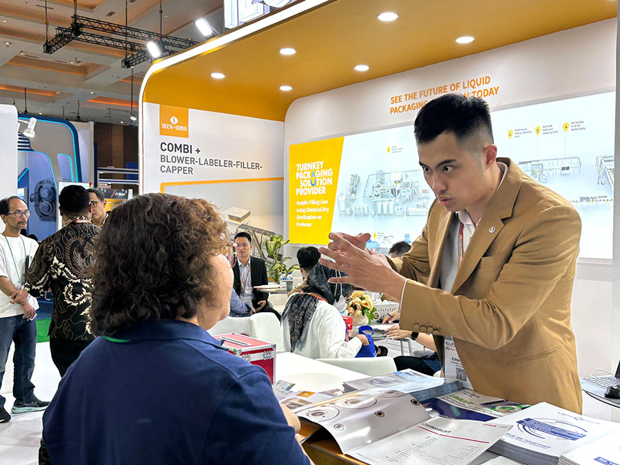 展會(huì)現(xiàn)場(chǎng),達(dá)意隆團(tuán)隊(duì)以其專業(yè)的素養(yǎng)吸引了來自全球各地的專業(yè)觀眾紛紛駐足咨詢,共同探討液態(tài)包裝行業(yè)發(fā)展新趨勢(shì)、新挑戰(zhàn)與新機(jī)遇,并尋求更深層次的合作機(jī)會(huì)。這不僅彰顯了達(dá)意隆在液態(tài)包裝領(lǐng)域的卓越實(shí)力,更是對(duì)飲品安全與質(zhì)量保障承諾的生動(dòng)詮釋,也進(jìn)一步鞏固了在印尼乃至東南亞市場(chǎng)的領(lǐng)先地位。