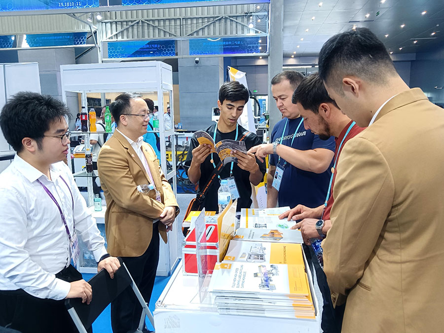 在對(duì)貼標(biāo)機(jī)進(jìn)行了近距離的觀摩與達(dá)意隆團(tuán)隊(duì)的專業(yè)解說下,客戶對(duì)我們的技術(shù)創(chuàng)新有了更為全面深刻的了解并紛紛給予高度評(píng)價(jià)。現(xiàn)場(chǎng)外國客戶來訪不斷,洽談其歡,相繼約定工廠的實(shí)地考察與合作意向。